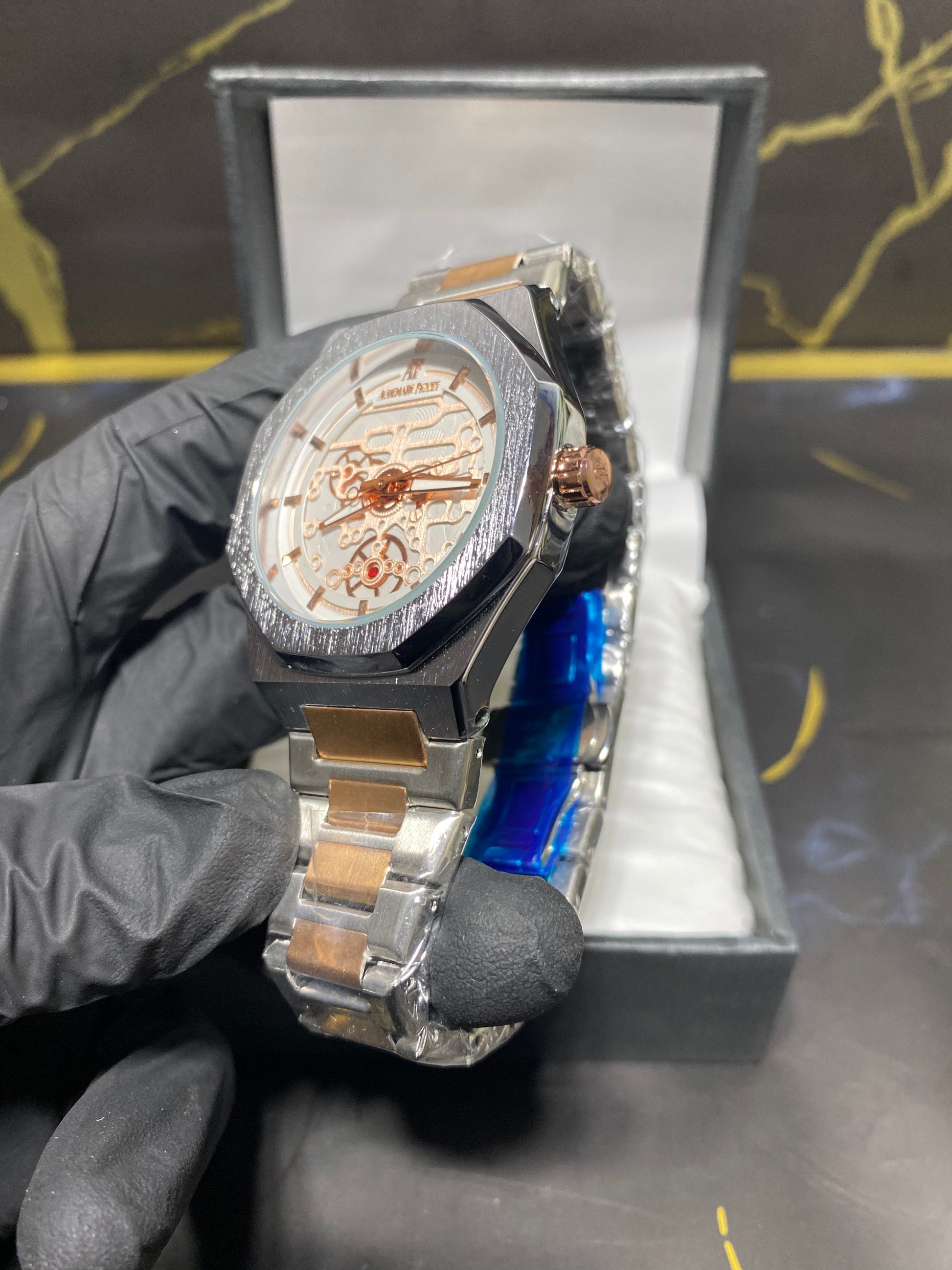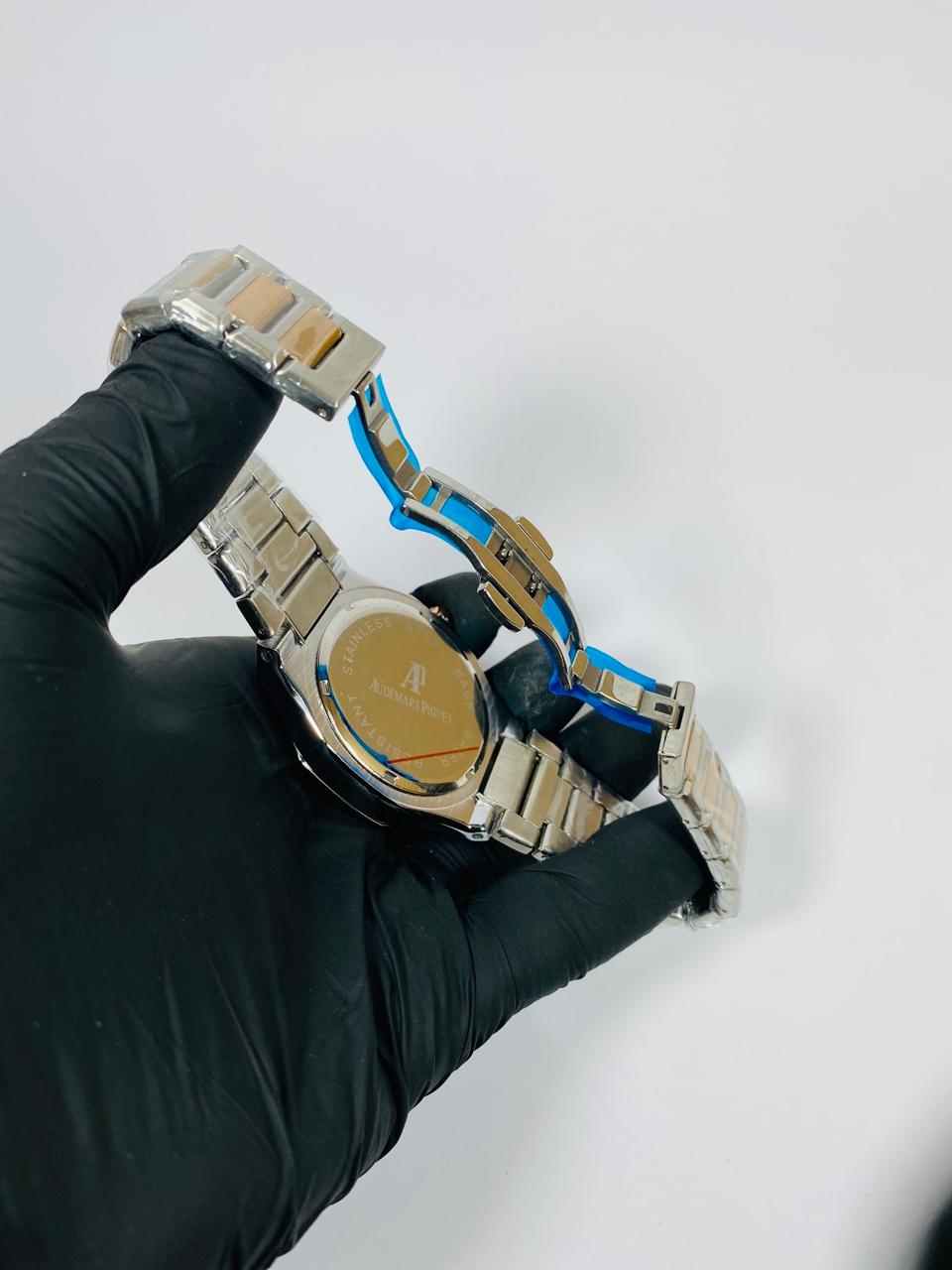 Make a statement with this stainless steel Audemars Piguet, featuring a heavyweight build and a classic white dial. Sophisticated, durable, and timeless—perfect for those who demand style and substance. ✨