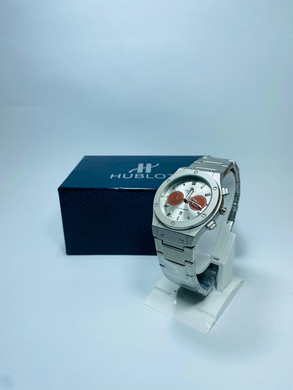A timeless masterpiece that exudes sophistication and class. The grey metallic finish reflects luxury, complemented by a refined chronograph-style dial for a subtle, elegant statement.